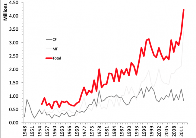 In 1948, comprehensive Federal surveys were initiated, which were some of the first long-term monitoring datasets documenting the rapid growth of light goose populations that would occur over the coming decades.